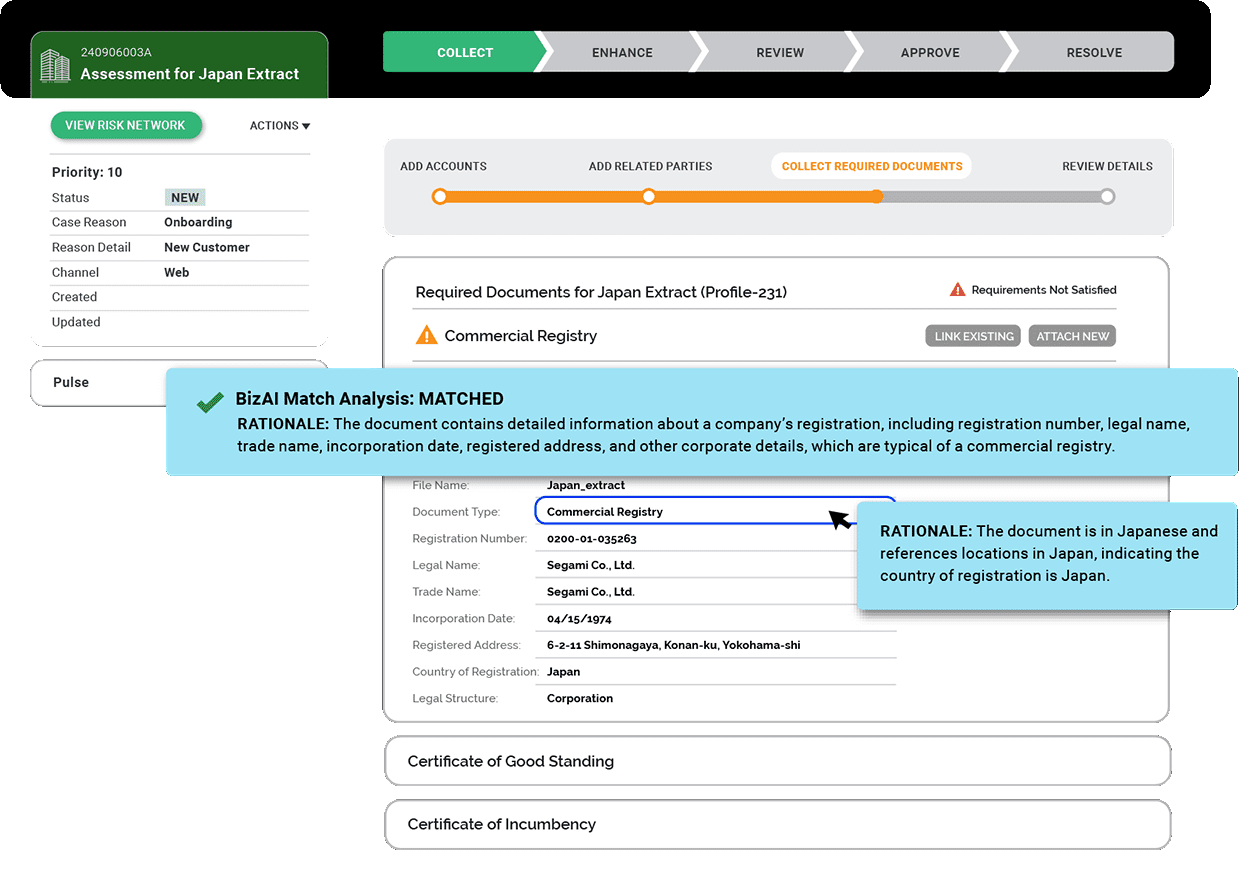 BizAI expedites the onboarding process for consumer and commercial clients by digitizing & automating the review, analysis, and processing of documents/data submitted by the client.