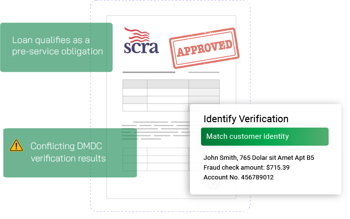 Runs automated checks to ensure no adverse action (repossession, foreclosure, collections escalation) proceeds without full SCRA review.